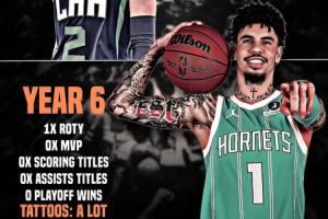 6年生涯:最佳新秀、0MVP、0得分王、0助攻王、季后赛0胜、文身更多了